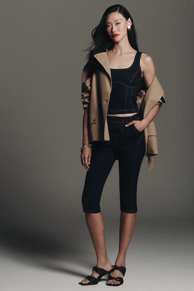 Low-Rise Dark Wash Capri Jeans
