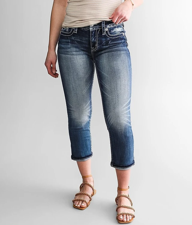 Ceros Women's Mid Rise Rolled Cuffed Capri Jeans