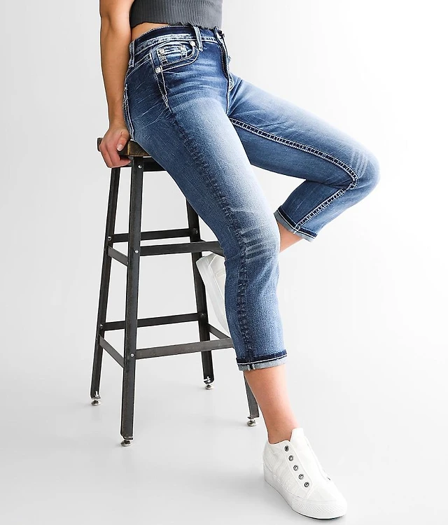 Curvy Step Hem High Rise Kick Crop Jeans Classic Mid Wash