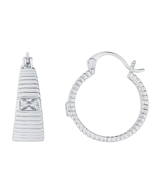 And Now This Cubic Zirconia Silver Plated Ribbed Texture Hoop Earring