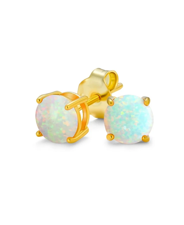 Bling Jewelry Golden Created Opal Round Solitaire Stud Earrings Gold Plated Sterling Silver 6MM