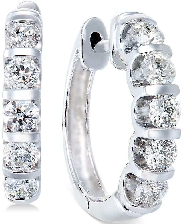 Diamond Five-Stone Hoop Earrings (1/2 ct. t.w.) 14k Gold or White