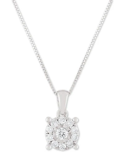 Diamond Halo Necklace 1/4 ct tw Round-Cut 10K White Gold 18"