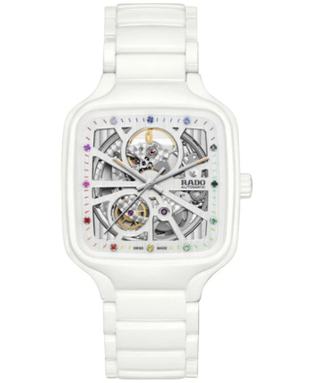 Rado Unisex Swiss Automatic True Square Open Heart Diamond (1/10 ct. t.w.) Ceramic Bracelet Watch 38mm