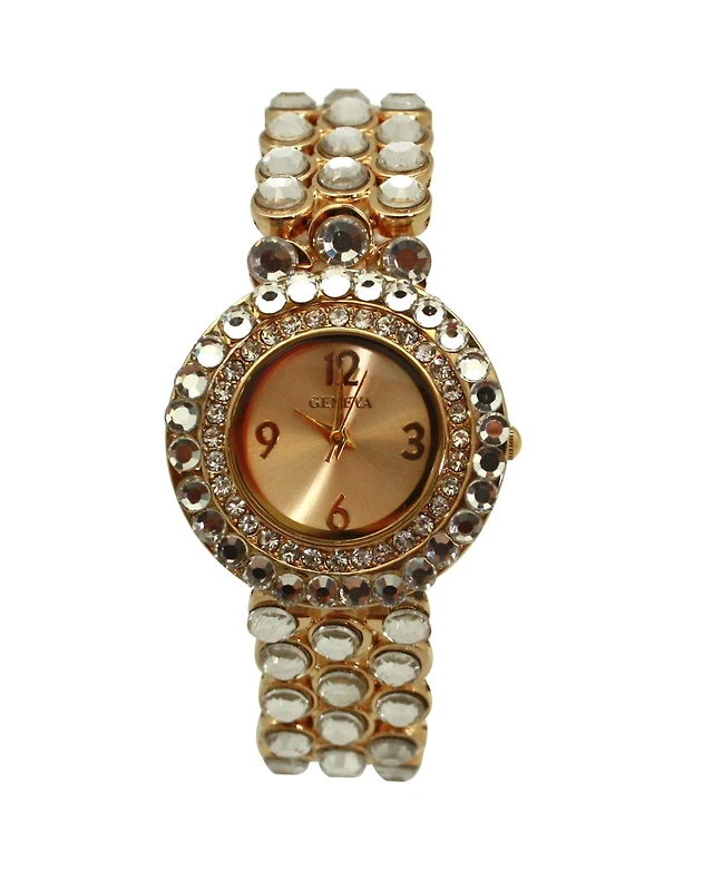 Facet Strass Swiss Gold Plated Ladies 30mm Watch
