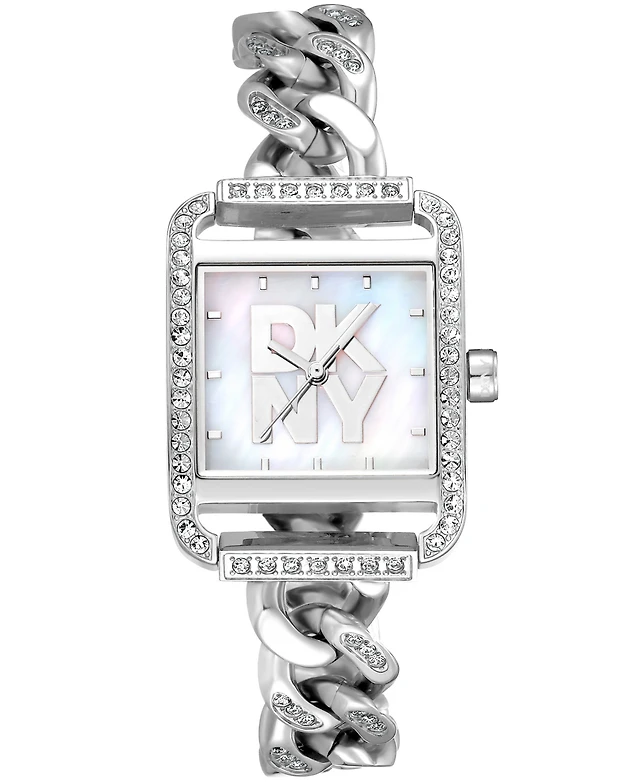 Olivia Pratt Silver Rhinestones And Pearl Tone Bangle Watch