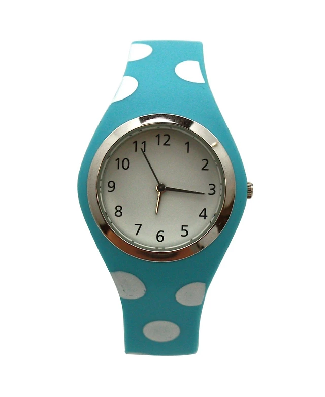 Olivia Pratt Light Blue Polka Dots Silicone Band Women Watch