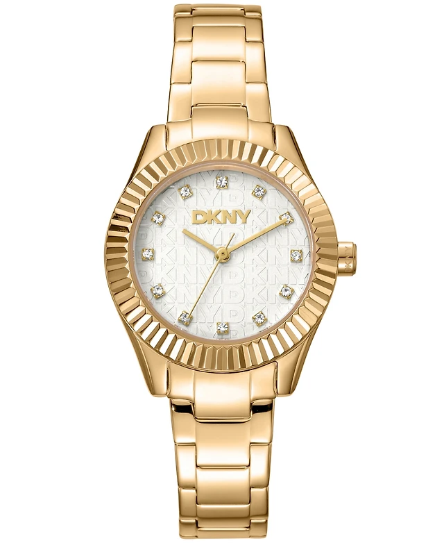 Dkny Women's Silver Crystal Accented Dial Stainless Steel Bracelet Watch, 30mm