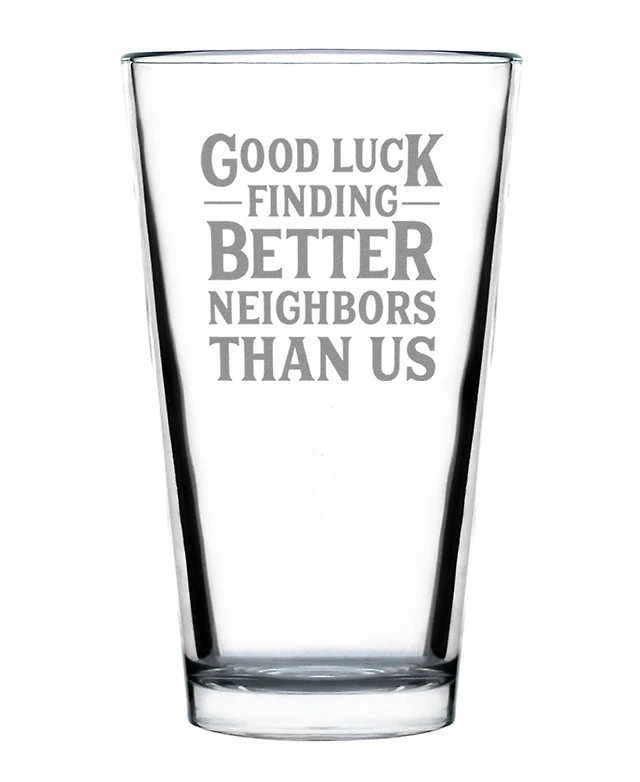 Bevvee Good Luck Finding Better Neighbors than us Neighbors Moving Gifts Stem Less Wine Glass, 17 oz