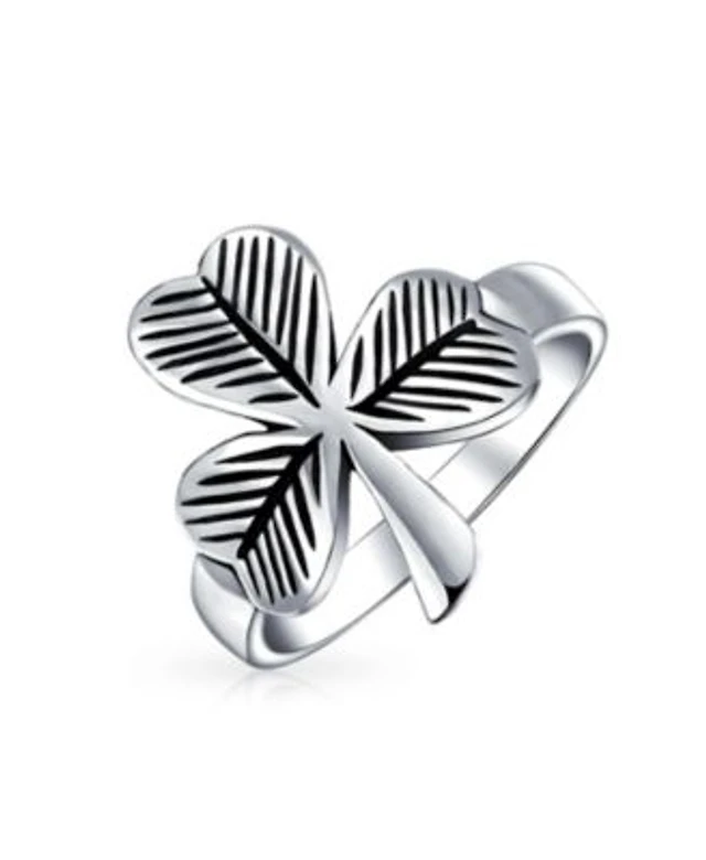 Bling Jewelry Good Luck Fortune Irish Shamrock Shape Lucky Charm Four Leaf Clover Pendant Necklace Sterling Silver