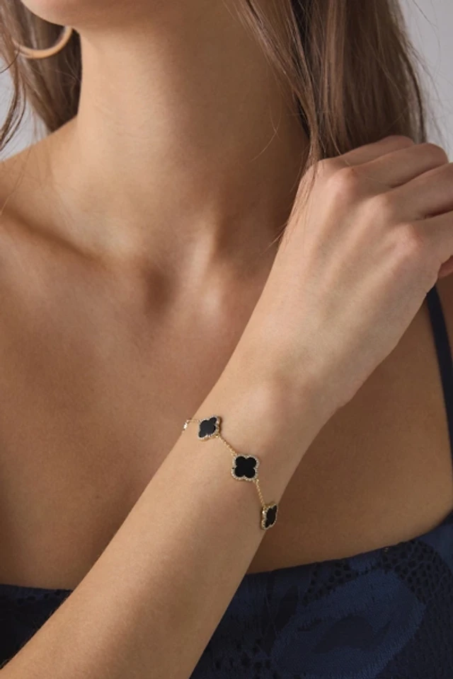 Electric Picks Clover Charm Rhinestone Chain Bracelet