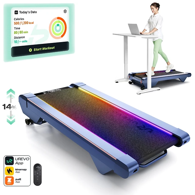 Under Desk Treadmill with Incline, Urevo 14% Max Incline Walking Pad, 2-in-1 Treadmill for Home Office, Extended Walking Surface, Quiet Motor, App Con