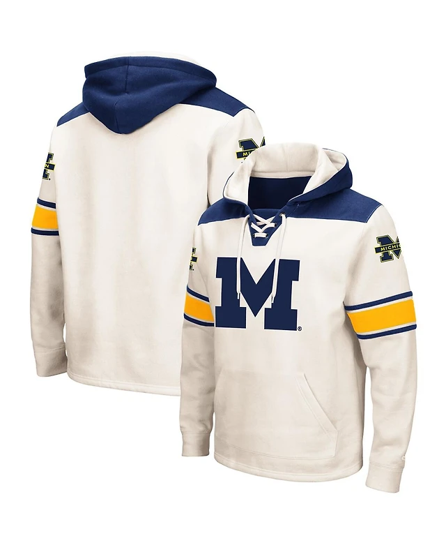 Men's Colosseum Cream Michigan Wolverines 2.0 Lace-Up Pullover Hoodie