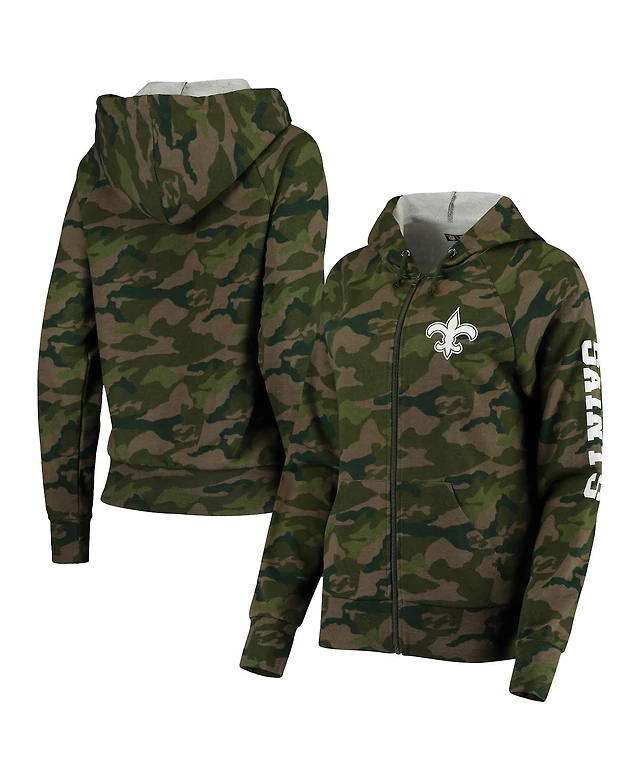 Women's New Era Camo New Orleans Saints Raglan Full-Zip Hoodie