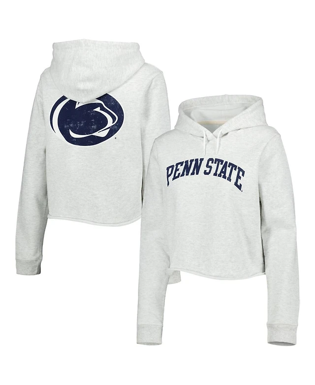 Fanatics Women's White/Gray Penn State Nittany Lions Arch Logo Striped Notch Neck Pullover Hoodie