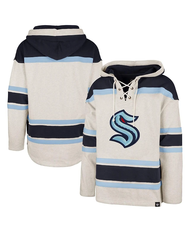 Men's '47 Brand Oatmeal Seattle Kraken Rockaway Lace-Up Pullover Hoodie