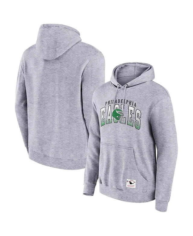 Men's Mitchell & Ness Heather Gray Distressed Philadelphia Eagles Pocket Passer Pullover Hoodie