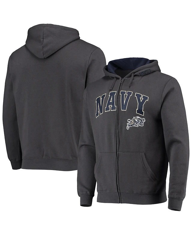 Men's Colosseum Charcoal Navy Midshipmen Arch and Logo 3.0 Full-Zip Hoodie
