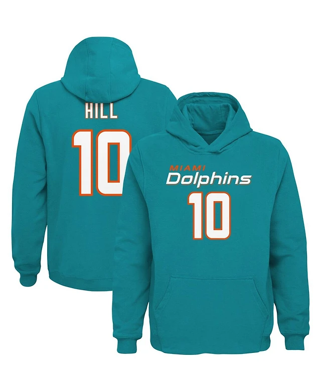 Big Boys Tyreek Hill Aqua Miami Dolphins Mainliner Player Name and Number Pullover Hoodie