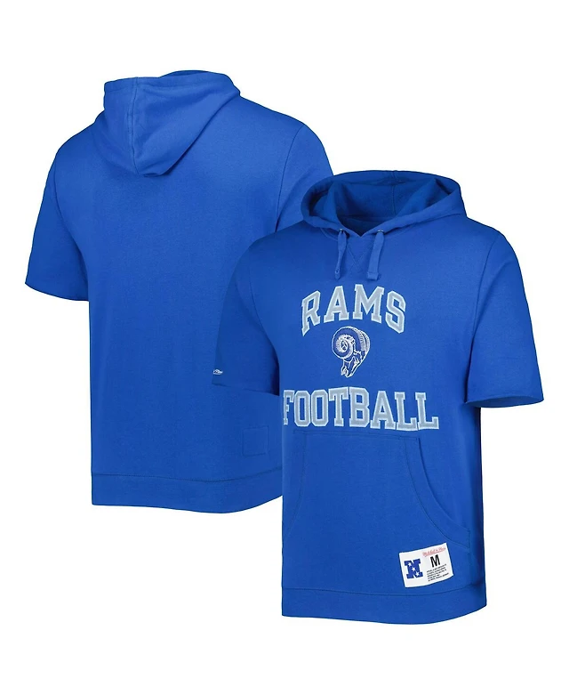 Men's Mitchell & Ness Royal Distressed Los Angeles Rams Washed Short Sleeve Pullover Hoodie