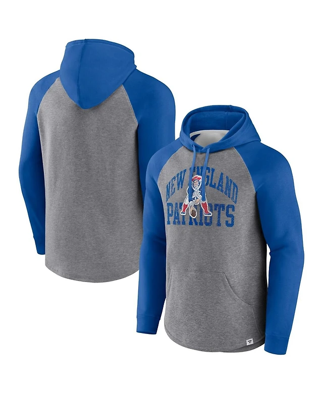 Men's Fanatics Heather Gray Distressed New England Patriots Favorite Arch Raglan Pullover Hoodie