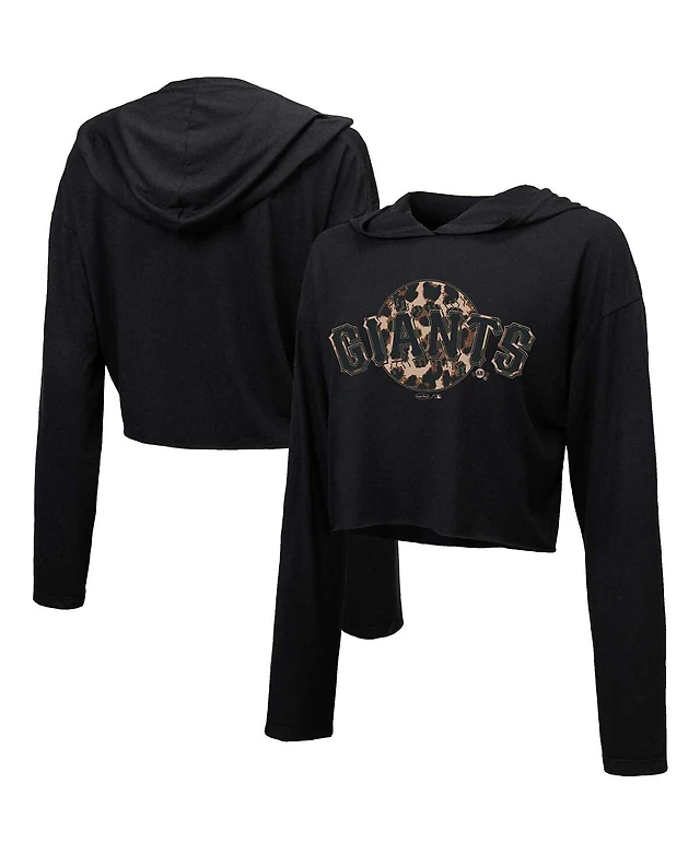 Women's Majestic Threads Black San Francisco Giants Leopard Cropped Hoodie