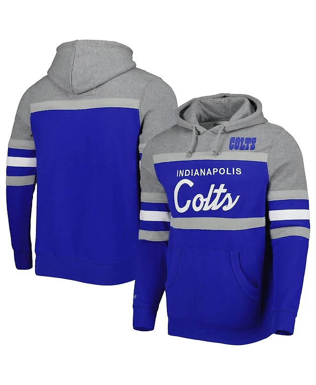 Men's Mitchell & Ness Royal, Heathered Gray Indianapolis Colts Head Coach Pullover Hoodie