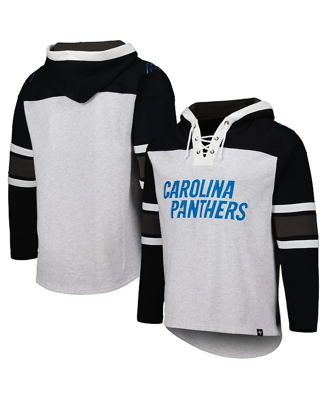 Men's '47 Brand Carolina Panthers Heather Gray Gridiron Lace-Up Pullover Hoodie