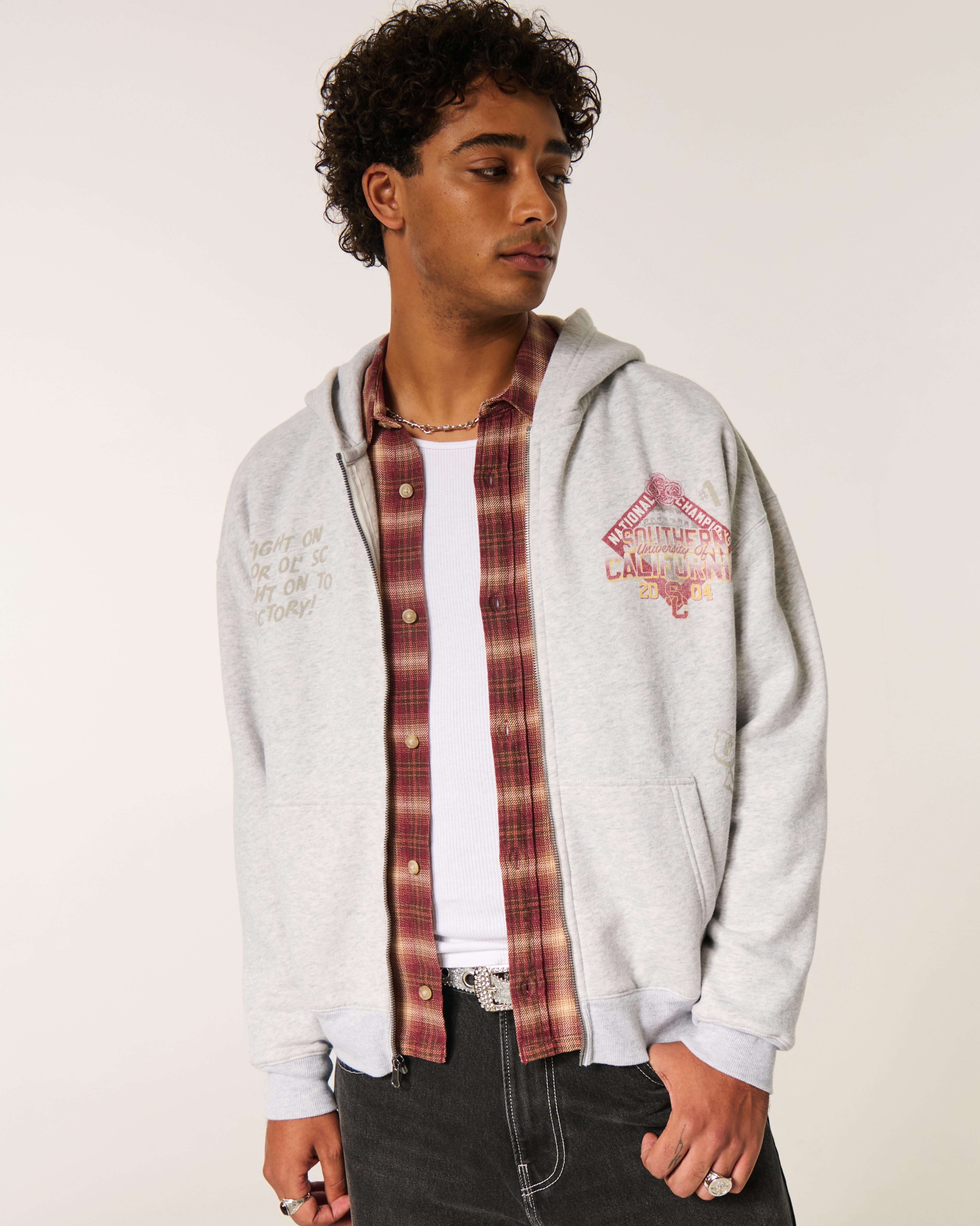 Boxy Zip-Up No Fear Graphic Camo Hoodie