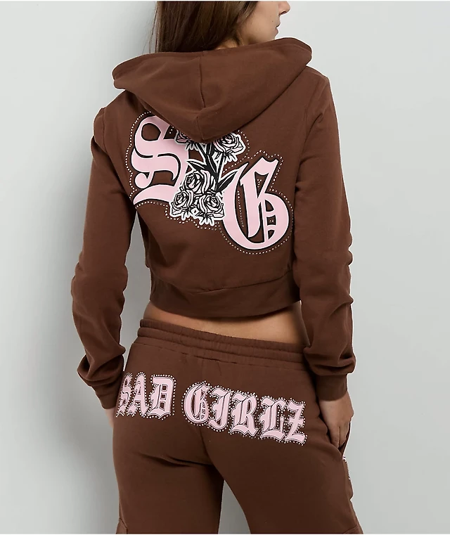 $AD GIRLZ By Junior H Flowers Brown Crop Zip Hoodie