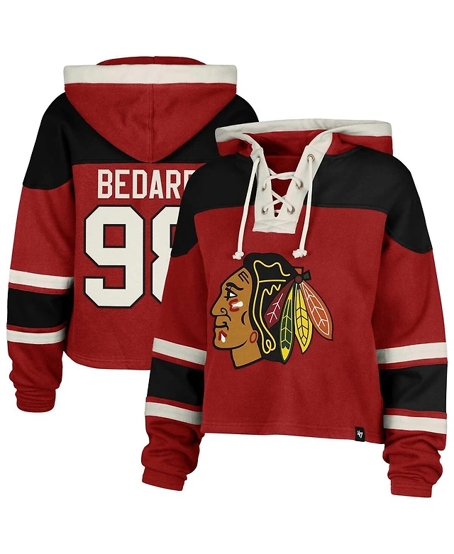 '47 Brand Women's Connor Bedard Red Chicago Blackhawks Superior Lacer Cropped Pullover Hoodie