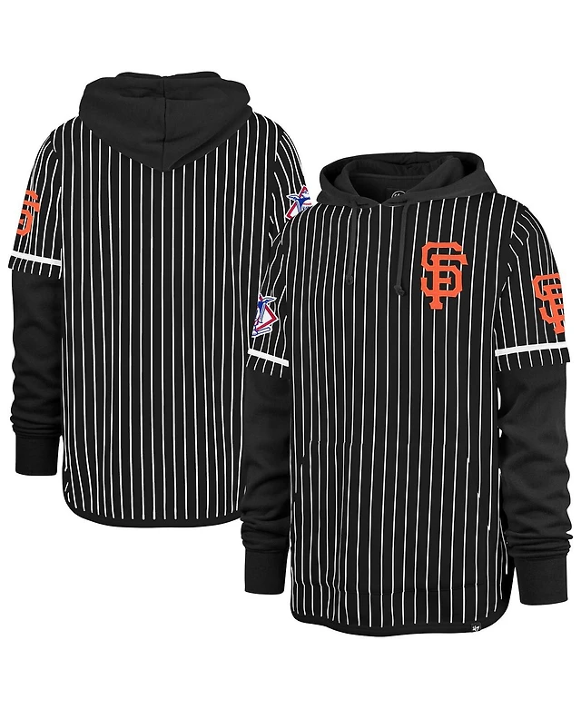 '47 Brand Men's Black San Francisco Giants Pinstripe Double Header Pullover Hoodie