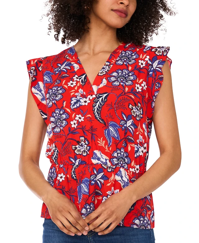Vince Camuto Women's V-Neck Short-Ruffle-Sleeve Top