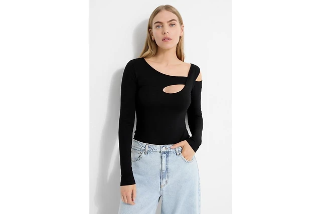 Gunit Women's Floral Embroidered Cold Shoulder Long Sleeve Shirt