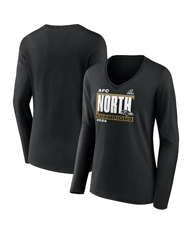 Women's Fanatics Heather Charcoal Baltimore Ravens 2023 Afc North Division Champions Conquer Long Sleeve V-Neck T-shirt