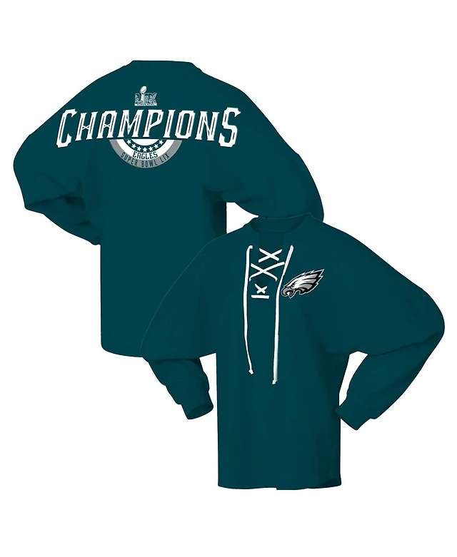 Fanatics Women's Midnight Green Philadelphia Eagles Super Bowl Lix Champions Lace-Up Spirit Jersey Long Sleeve T-Shirt