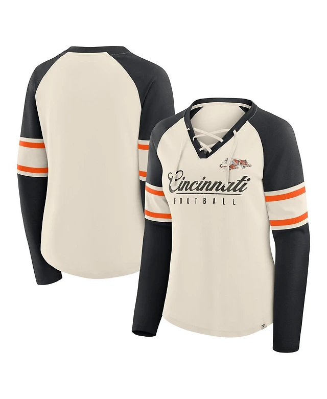 Fanatics Women's Cream/Purple Baltimore Ravens Hometown Gridiron Hero Raglan Lace-Up V-Neck Long Sleeve T-Shirt