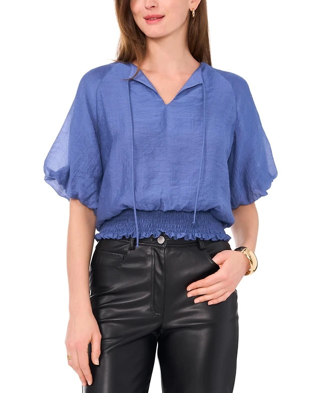Vince Camuto Women's Short-Sleeve Smocked-Waist Top