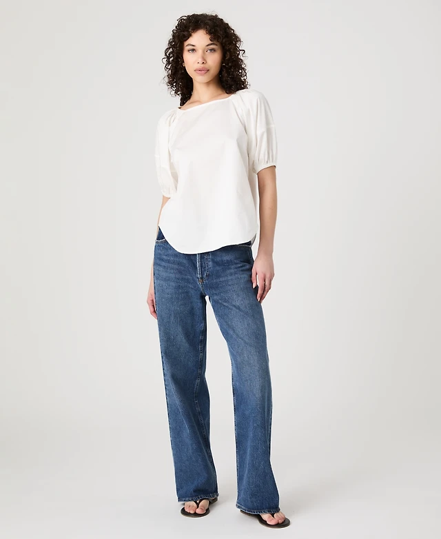 Dkny Jeans Women's Smocked Cotton Elbow-Sleeve Top