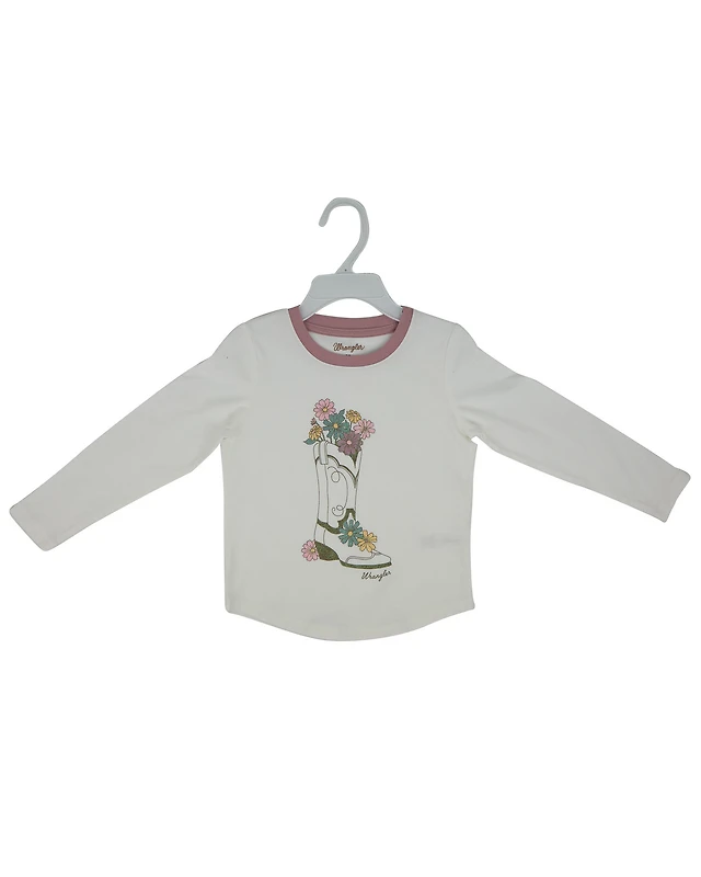 Wrangler Toddler Girls' Flower Boot Long Sleeve Graphic T-Shirt
