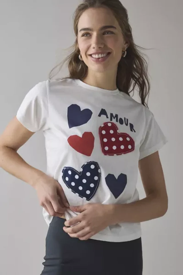 I Heart LA Animal Print Applique Graphic Slim Tee
