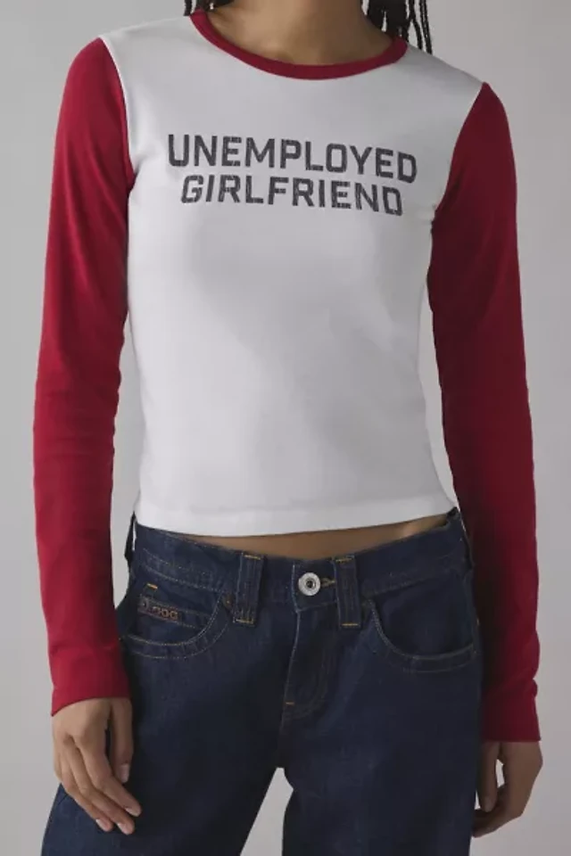 Rockstar Girlfriend Graphic Boatneck Off-The-Shoulder Long Sleeve Tee