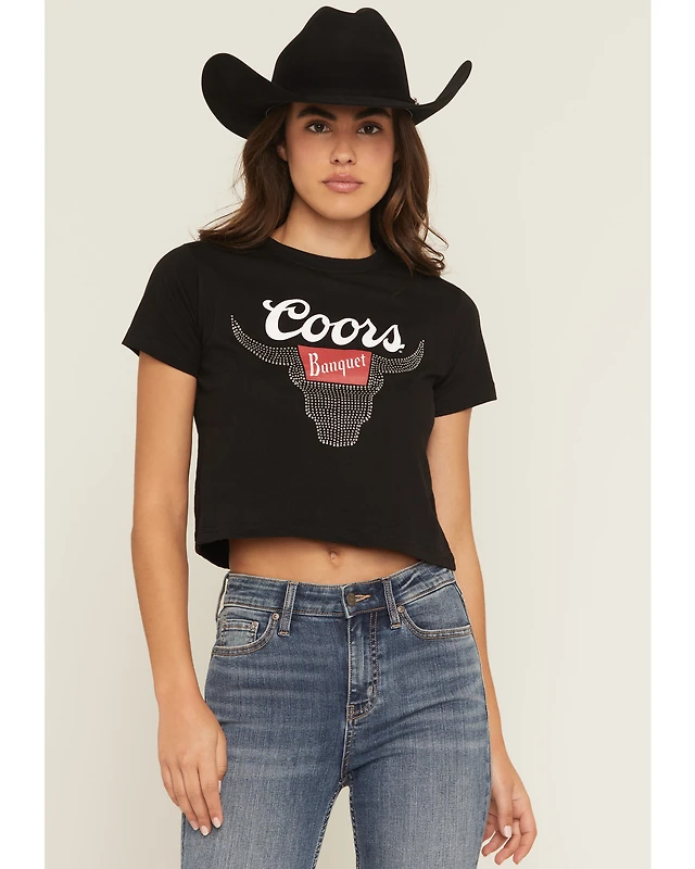 Coors Women's Logo Cattle Rhinestone Short Sleeve Cropped Graphic Tee
