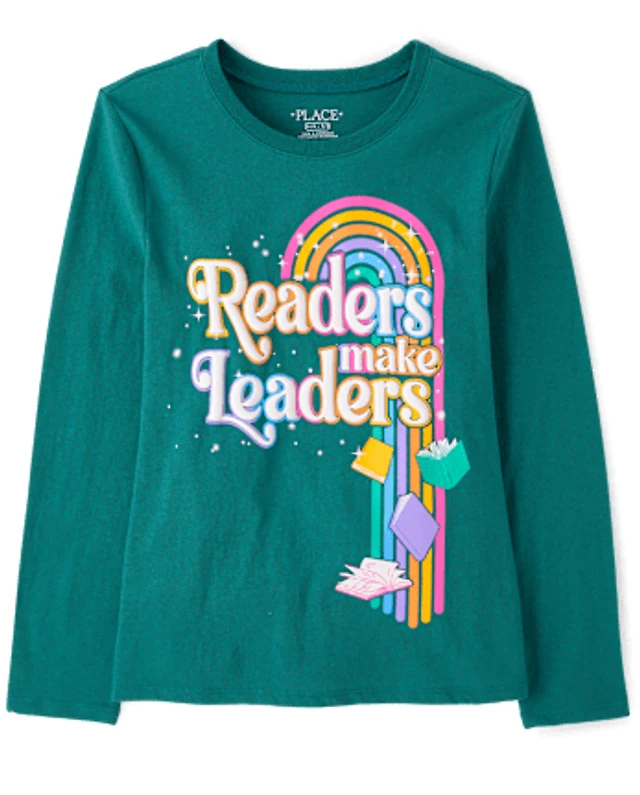 Girls Readers Are Leaders Rainbow Graphic Tee