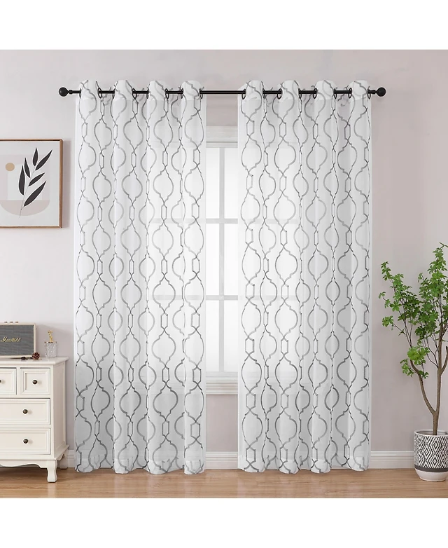 Abstract Geometric Embroidery Semi-Sheer Rod Pocket Curtain Panel