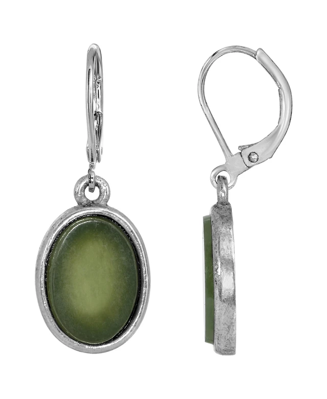 2028 Silver-Tone Semi Precious Jade Oval Flat Drop Earrings