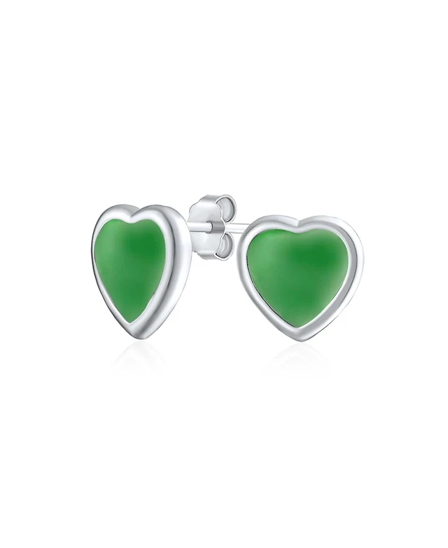Bling Jewelry Lovers Bezel Set Green Jade Heart Stud Earrings Sterling Silver Gift