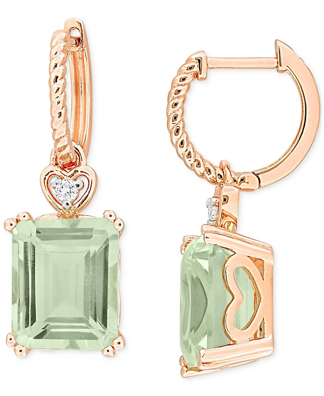 Green Quartz (6-3/8 ct. t.w.) & White Topaz (1/20 ct. t.w.) Heart Dangle Drop Earrings in Rose-Plated Sterling Silver