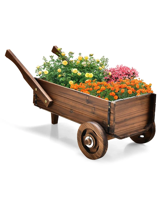 Costway Decorative Wagon Cart Plant Flower Pot Stand Wooden Raised Garden Planter Box