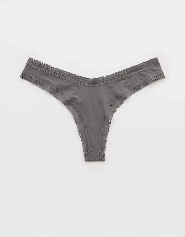 SMOOTHEZ Microfiber Lace Thong Underwear